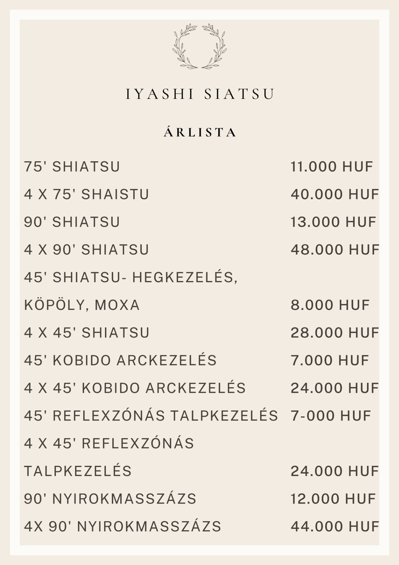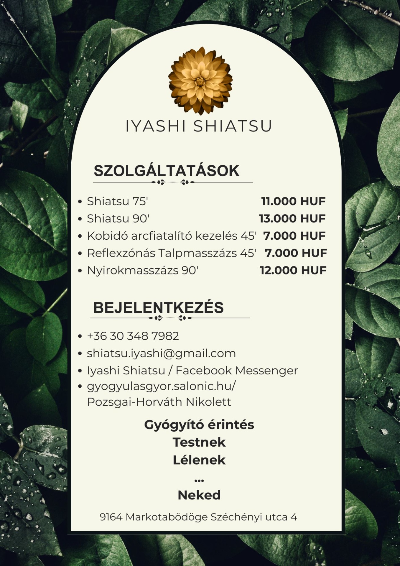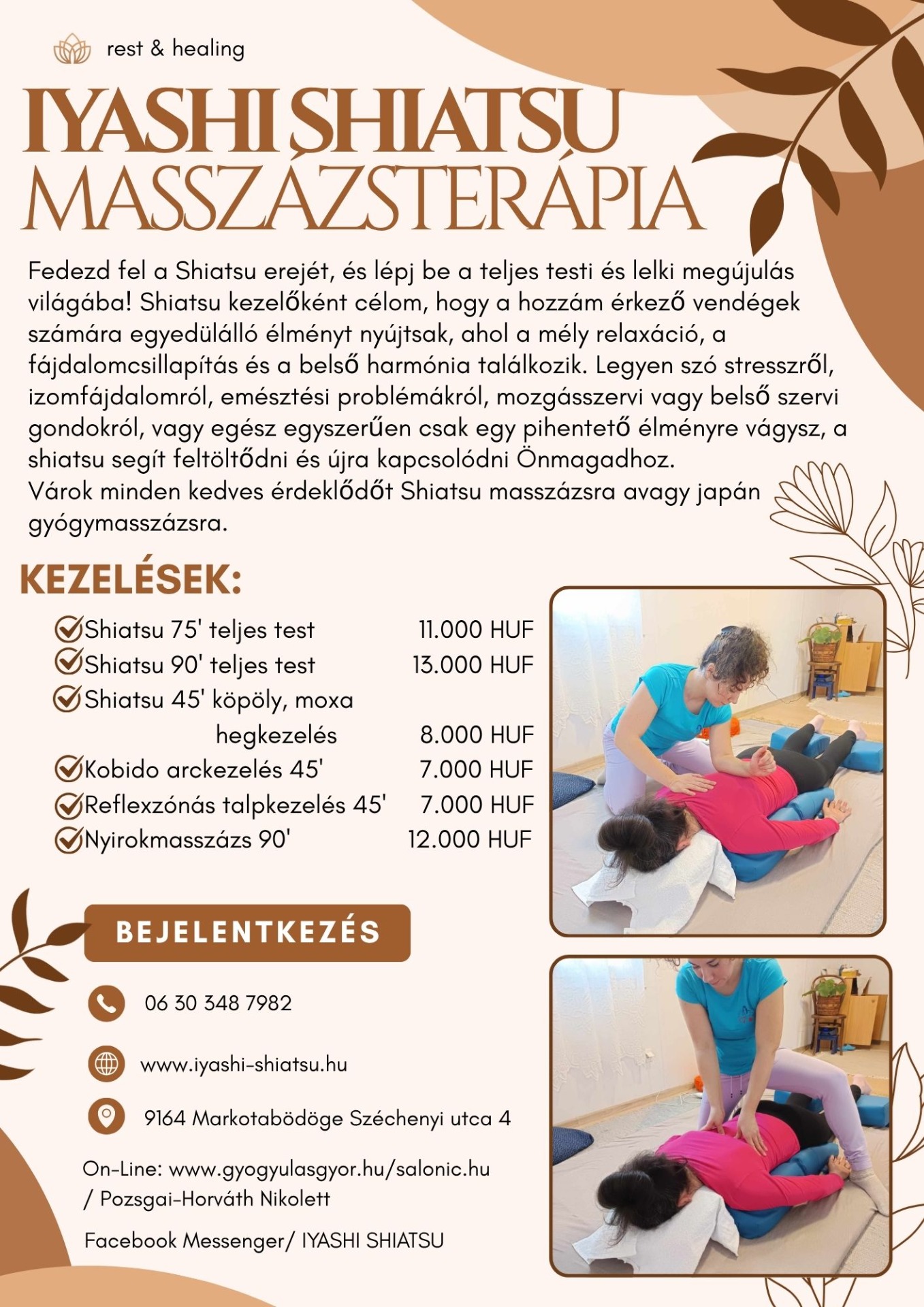 Várok szeretettel minden gyógyulni, pihenni vágyót, érdeklődőt, aki szeretné kipróbálni a Shiatsu csodáját.